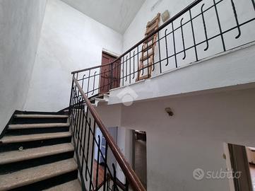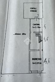 L'ingresso posto al piano terra ci conduce ad una cantina e ad un cortile comune nel quale è presente una grata dove scendeno nel piano seminterrato troviamo tre cantine.