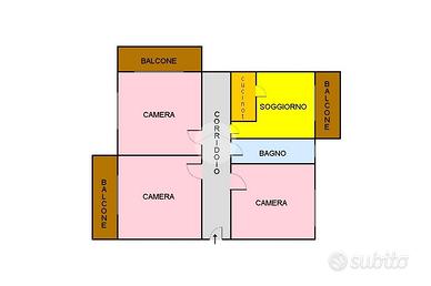 In via Guglielmo Marconi, a pochi passi da tutti i principali servizi cittadini, quadrilocale di 90 mq sito al terzo ed ultimo piano di una palazzina di fine anni '60 priva di ascensore.