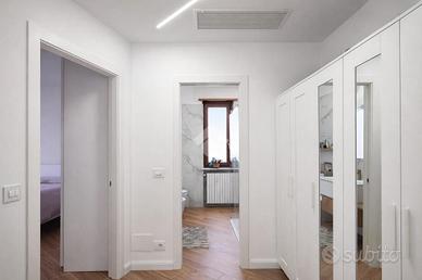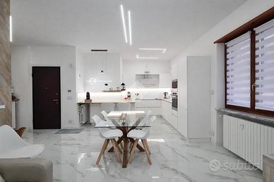 Proponiamo in vendita splendido appartamento di 4 locali completamente ristrutturato, situato al primo piano di una palazzina dotata di ascensore, in zona comoda a tutti i servizi e a due passi dal centro. L'alloggio è stato oggetto di una ristrutturazione totale, con impianto elettrico e idraulico nuovi, ed è pronto per essere abitato senza necessità di alcun intervento. Durante i lavori è stato inoltre realizzato l'insufflaggio isolante nei muri perimetrali e nelle contropareti in cartongesso, migliorando sensibilmente l'isolamento termico e acustico e contribuendo alla riduzione dei consumi energetici dell'abitazione. Gli spazi interni sono stati ripensati in chiave moderna, con salotto e cucina realizzati in un unico ambiente, ampio e accogliente, ideale per la vita quotidiana e per ricevere ospiti. La zona notte è composta da due camere da letto, entrambe con affaccio diretto sul balcone, che garantisce luminosità e sfogo esterno. Il bagno è completamente ristrutturato e dispone di una comoda zona lavanderia. L'appartamento è estremamente luminoso, grazie all'ottima esposizione che consente di godere del sole durante tutta la giornata, valorizzato ulteriormente da un impianto di illuminazione moderno, realizzato su misura per ogni ambiente. Il comfort abitativo è assicurato dalla pompa di calore canalizzata in tutti i locali, dal riscaldamento centralizzato con valvole termostatiche e dai doppi infissi, che garantiscono isolamento termico e acustico. Completano la proprietà box auto e cantina inclusi nel prezzo. Soluzione ideale per chi cerca un appartamento chiavi in mano, moderno, luminoso e in posizione strategica.
