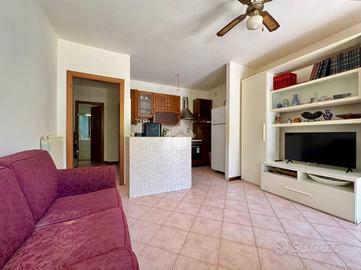 All'interno troviamo un ampio soggiorno con angolo cottura, una pratica sala da pranzo, camera matrimoniale, cameretta e doppio bagno, di cui uno finestrato. Gli ambienti sono ben distribuiti e facilmente adattabili alle esigenze di una famiglia.