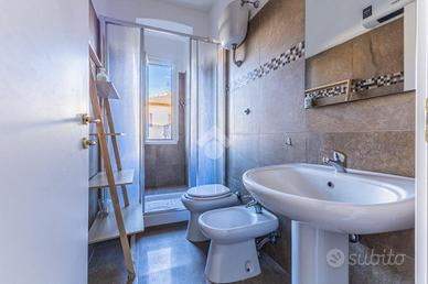 Il bagno principale è finestrato e completo di doccia, mantenuto con cura e funzionalità.