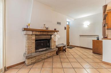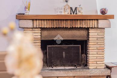 Al piano terra si apre la zona giorno, ampia e accogliente, composta da un salone con camino in muratura, angolo cottura e bagno. Gli spazi sono luminosi e ben organizzati, impreziositi da pavimenti in cotto e dettagli che richiamano lo stile tradizionale delle dimore di borgo.
