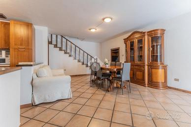 L'immobile si sviluppa su tre livelli abitativi, collegati da una scala interna in legno che dona continuità e calore agli ambienti.