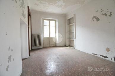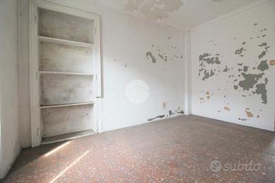 In zona centrale, comoda a tutti i negozi e servizi che il paese offre, ampio appartamento dotato di ampio terrazzo. L'appartamento, accessibile tramite scala condominiale, risulta libero su due arie. Il corridoio di ingresso conduce all'ampio soggiorno reso molto luminoso da una finestra e dalla portafinestra che conduce al primo balcone. La cucina è abitabile ed è resa luminosa dalla portafinesta che affaccia sul terrazzo. Le camere da letto sono dotate entrambe di portafinestra che affacciano verso l'esterno. Il bagno è finestrato e attualmente dotato di vasca. Completa l'appartamento un comodo locale ripostiglio posizionato di fianco al terrazzo che può essere utilizzato come cantina. L'appartamento e la palazzina in cui è collocata sono da riattare completamente.