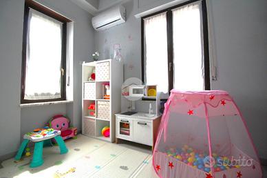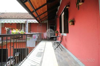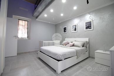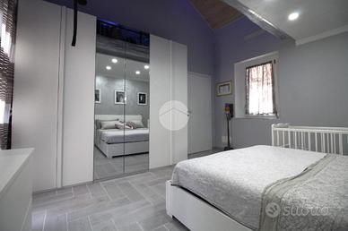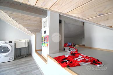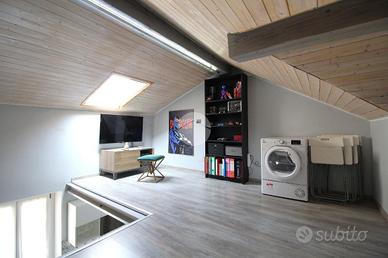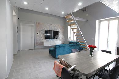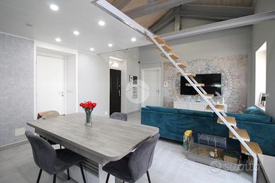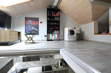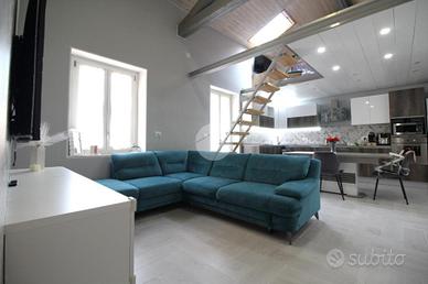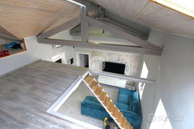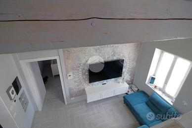 In zona centrale, comoda a tutti i servizi ed ai negozi, appartamento in contesto bifamiliare con finiture moderne ed eleganti. Il portoncino di ingresso blindato apre sulla zona giorno unica in cui è presente un'ampio spazio soggiorno affiancato dalla cucina. L'ambiente risulta molto luminoso, ed è caratterizzato da un soffitto a legno a vista e da un primo soppalco accessibile con una scaletta fissa. Sempre dalla zona giorno è possibile raggiungere il primo balcone ed il terrazzo su cui pranzare con amici e familiari. La camera da letto matrimoniale è di metratura generosa ed anch'essa è dotata del proprio soppalco, sfruttabile come cabina armadio o, all'occorrenza, come zona studio. La seconda camera da letto è luminosa, mentre il disimpegno conduce al bagno ben rifinito e dotato di sanitari moderni a filo muro e doccia a pavimento. Completa l'appartamento una generosa cantina al piano interrato. La soluzione è dotata di infissi in legno con vetri doppi recentemente installati, di colore bianco all'interno ed effetto legno sul lato esterno. E' presente inoltre il condizionatore. Il riscaldamento è autonomo ed è posato a pavimento, alimentato da una caldaia a condensazione. L'appartamento è inserito all'interno di una casa semindipendente ed è situato al primo piano, non sono presenti quindi spese di gestione condominiale. --------------------------------------- Ti piacerebbe cambiare casa? Affidati a noi! Offriamo un servizio di consulenza gratuita che ti consentirà di capire il valore del tuo immobile. Nella nostra banca dati troveremo il giusto cliente per casa tua!