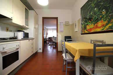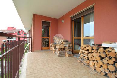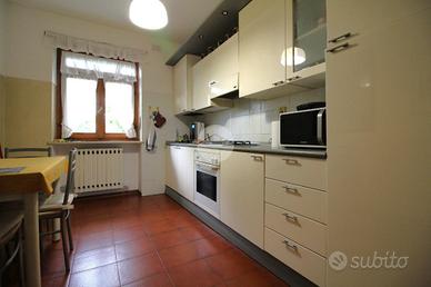 In zona residenziale, comoda a tutti i servizi ed immersa nel verde, ampio appartamento quadrilocale in contesto di sole sei famiglie. L'ingresso apre verso il soggiorno di dimensione generosa che è caratterizzato dalla presenza di un camino a legna che fa da sfondo alla stanza. L'ambiente è in grado di accogliere sia il salotto che la sala da pranzo, la portafinestra conduce allo spazioso terrazzo con vista verso le colline. La cucina abitabile è dotata di una comoda parete cottura lineare ed è ottimamente illuminata dalla finestra. Il disimpegno conduce alla zona notte in cui sono presenti due camere matrimoniali. La prima stanza affaccia verso il terrazzo, mentre la seconda camera è dotata del proprio balcone angolare esclusivo. Il bagno è rifinito con piastrelle scure ed è accessoriato di vasca e doccia, oltre all'impianto per la lavatrice. Al piano terreno è presente una comoda cantina posizionata alle spalle dell'autorimessa. Nel cortile condominiale è presente inoltre un'area destinata a parcheggio. Il contesto è contornato da giardino condominiale ben curato e piantumanto, ed è presente anche l'area barbecue a disposizione dei condomini. L'appartamento è rifinito con pavimentazione in cotto in tutte le stanze, infissi in legno con vetri doppi e condizionatore. Il riscaldamento è autonomo per ogni unità e le spese di gestione condominiale risultano essere contenute. --------------------------------------- Cerchi lavoro? Il tuo futuro inizia da noi! Siamo alla ricerca di personale giovane e motivato da inserire negli uffici di nuova apertura. Previo colloquio conoscitivo, ti daremo maggiori informazioni. Inviaci il tuo curriculum vitae a to2e4@tecnorete.it Cresciamo insieme!