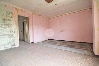 In zona centrale, comoda a tutti i negozi e servizi che il paese offre, ampio appartamento dotato di ampio terrazzo. L'appartamento, accessibile tramite scala condominiale, risulta libero su due arie. Il corridoio di ingresso conduce allo spazioso soggiorno reso molto luminoso da una finestra e dalla portafinestra che conduce al primo balcone. La cucina è abitabile ed è resa luminosa dalla portafinesta che affaccia sul terrazzo. Le camere da letto sono dotate entrambe di portafinestra che affacciano verso l'esterno; La camera matrimoniale misura oltre 20 mq. Il bagno è finestrato e attualmente dotato di vasca. L'appartamento e la palazzina in cui è collocato sono da riattare completamente.