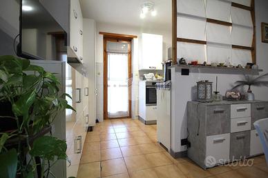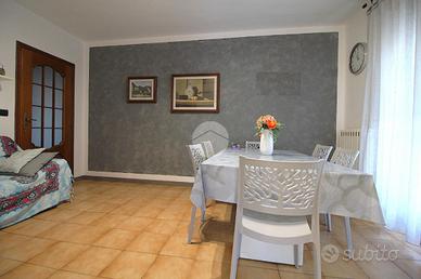 In zona Borgo Orchidea, comoda a tutti i servizi ed immersa nel verde, ampio appartamento quadrilocale con terrazzo in contesto di sei famiglie. Il portoncino d'ingresso blindato apre sul generoso e lungo disimpegno che separa tutte le stanze. La zona giorno è distribuita in due ambienti di generosa metratura. Il soggiorno è spazioso, ed è possibile sfruttare due intere pareti per posizionare il divano angolare ed una parete attrezzata; La portafinestra illumina la stanza e conduce al primo balcone con vista sulle colline. La cucina abitabile si sviluppa in un' unica stanza dove la zona cottura è sviluppata sfruttando il muretto basso, in maniera tale da poter utilizzare il resto della stanza per posizionare un comodo tavolo da pranzo ed eventualmente un'ulteriore zona soggiorno. Data la dimensione, può essere sfruttata la cucina per ricreare una zona giorno unica, così da andibire l'attuale soggiorno come terza camera da letto. Le camere da letto sono di generosa dimensione, risultando quindi facilmente arredabili come stanze matrimoniali. Entrambe sono inoltre dotate di portafinestra che conduce al terrazzo. Anche questo spazio sviluppa, data la sua dimensione, si presta ad essere sfruttato pranzare all'aperto nelle belle giornate. E' stata inoltre inserita l'apposita veranda, che lo rende funzionale anche durante l'inverno. Il bagno principale è accessoriato di vasca, lavabo con doppio lavandino e spazio per posizionare l'asciugatrice. Il secondo servizio è stato ristrutturato di recente e rifinito con doccia, impianto lavatrice e sanitari moderni. Completa il comodo ripostiglio e la cantina posizionata al piano interrato. Il riscaldamento è autonomo e consente di gestire in completa autonomia i consumi. L'appartamento è accessoriato di infissi in legno con doppi vetri, zanzariere e tende estive. L'immobile è posizionato al terzo piano di un piccolo condominio di sole sei famiglie edificato negli anni '80 ed è contornato dal curato giardino condominia