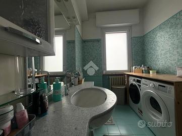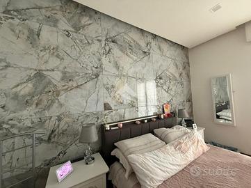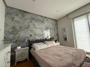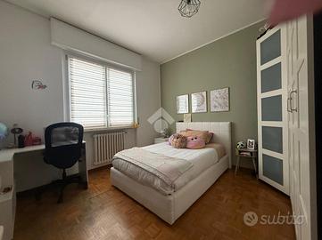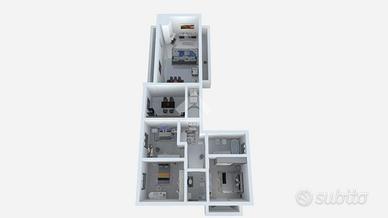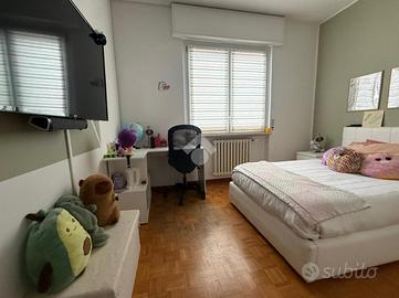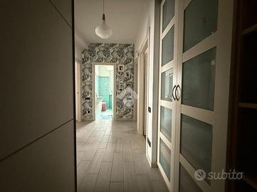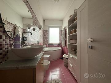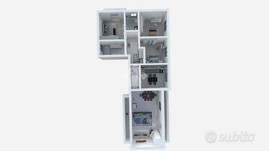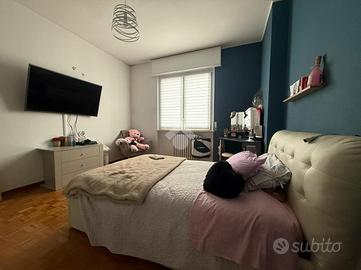 La zona notte comprende una camera matrimoniale con accesso al balcone, due camerette particolarmente spaziose e due servizi finestrati: il primo con vasca idromassaggio, il secondo completo di doccia e attacco lavatrice asciugatrice.