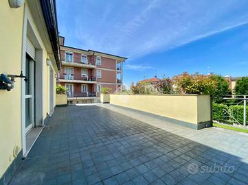 URAGO MELLA: Nel cuore del quartiere vendiamo un'elegante residenza su più livelli, costruita nel 2001. Al primo piano è presente un salotto e una cucina separata abitabile, dal corridoio si accede alla camera doppia e al bagno finestrato con doccia. Trova posto anche un comodo ripostiglio. Tutte le stanze hanno accesso diretto all'ampio terrazzo. Al secondo piano si trovano la camera matrimoniale e la camera singola e il secondo bagno finestrato con vasca. Anche qui le stanze hanno accesso diretto al balcone comodo situato al secondo piano. Completano la proprietà un box doppio in larghezza, cantina e zona lavanderia. Il complesso è, inoltre, arricchito dalla presenza di un giardino comune accessibile solo ai condomini.