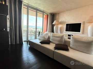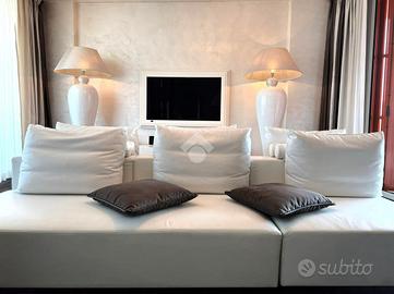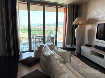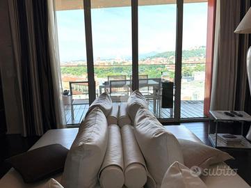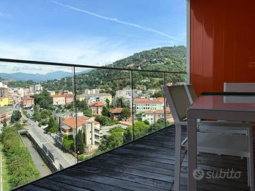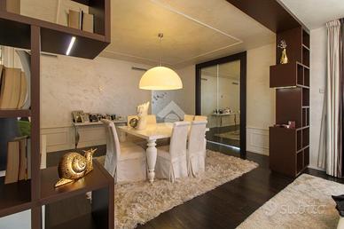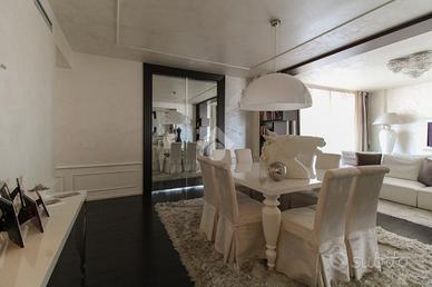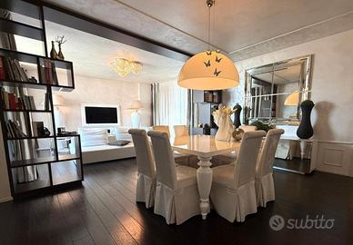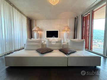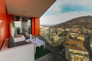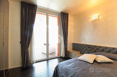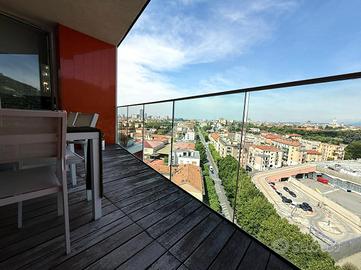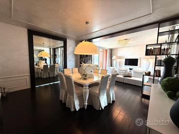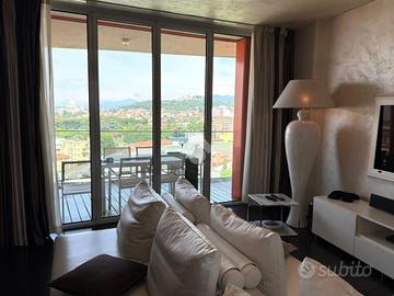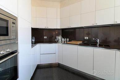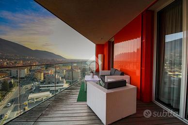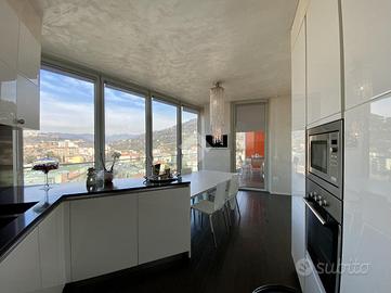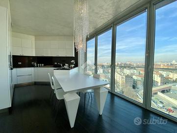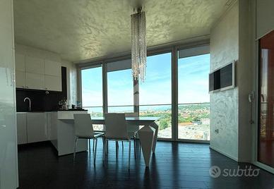 Via Duca D'Aosta, Brescia proponiamo prestigioso quadrilocale posto all'undicesimo piano della 'Torre Fuksas': contesto condominiale esclusivo. Tramite il doppio ascensore è possibile raggiungere l'ingresso, dotato di porta blindata; questa apre all'atrio che ci accompagna nelle varie zone dell'immobile. La zona giorno è composta da una cucina separata e da un ampio soggiorno, entrambe con affaccio sulla loggia. La cucina, come il soggiorno, è estremamente luminosa, grazie alle vetrate che offrono una vista panoramica mozzafiato. La zona notte è composta da tre camere da letto: una singola, una doppia e una matrimoniale con bagno padronale. E' inoltre presente un secondo bagno. Completano la soluzione un guardaroba, una lavanderia, una cantina di 21 mq, un doppio box auto e due posti auto coperti privati. Le spese condominiali ammontano a circa 9.000 euro annui e comprendono: pulizie delle scale, luci, amministratore condominiale, consumo dell'acqua, riscaldamento e raffrescamento a pavimento. Per quanto riguarda le utenze, acqua e riscaldamento sono centralizzati, mentre l'unica utenza autonoma è l'energia elettrica. L'immobile è stato meticolosamente arredato con articoli di design, inclusi nel prezzo.