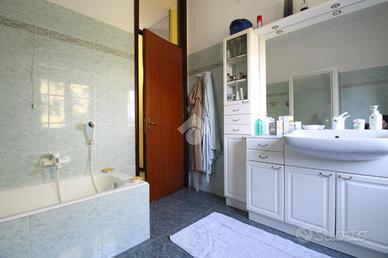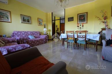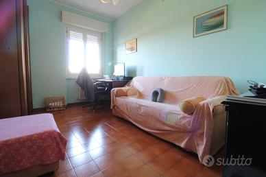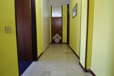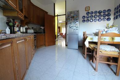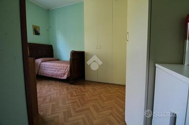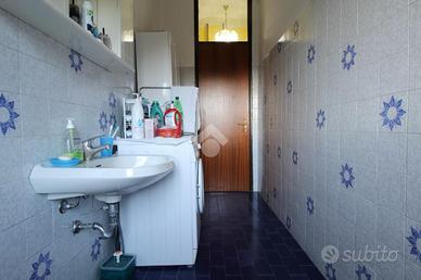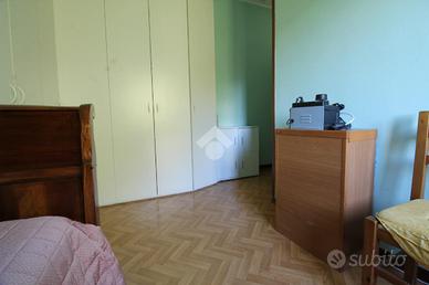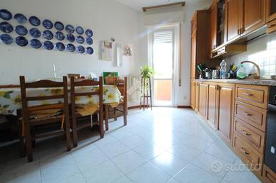 COSE DA SAPERE SULL'IMMOBILE: Quadrilocale quarto piano - cucina abitabile separata - soggiorno - due camere matrimoniali - camera doppia - due bagni finestrati - ripostiglio - due balconi - box doppio - cantina DESCRIZIONE E PARTICOLARITA': All'interno di una palazzina di inizi anni '70, proponiamo ampio quadrilocale, posto al quarto piano, servito da ascensore. L'immobile si presenta in buono stato, con serramenti in vetro doppio/PVC. Accediamo al disimpegno che ci conduce all'ampio soggiorno, dotato di porta finestra dalla quale accediamo alla balconata, che fa angolo e si collega ad una delle camere. Attiguamente la cucina abitabile, con secondo balcone. Proseguendo la zona notte ben distribuita, dove troviamo due camere matrimoniali ed una doppia, oltre due bagni finestrati. Il riscaldamento è centralizzato con produzione di acqua calda sanitaria. Completano la soluzione cantina e ampio box auto doppio in lunghezza di 30mq, posti al piano seminterrato. UBICAZIONE E CONTESTO: Il contesto è molto tranquillo ed inserito in una zona defilata, servita da bus, e nei prossimi anni dal tram.