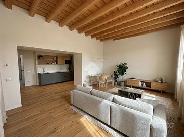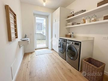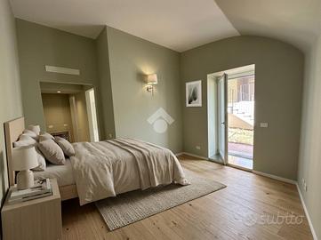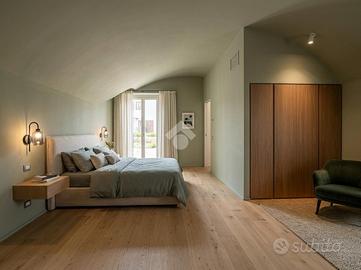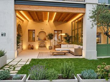 MOMPIANO Nel cuore del nucleo storico del quartiere, si propone in vendita esclusivo appartamento quadrilocale posto al piano terra in cascina ristrutturata a nuovo. Il portico privato e le porzioni di giardino fronte e retro abitazione valorizzano l'immobile. L'appartamento è caratterizzato dall'ampia metratura interna. La cucina è a vista ed il soggiorno è valorizzato dall'ampia vetrata esposta a Sud con accesso al portico esterno di pertinenza esclusiva. Tre le camere da letto di cui la matrimoniale con possibilità di cabina armadio e bagno padronale finestrato. Un secondo servizio finestrato ed una comoda lavanderia completano il quadrilocale. Di pertinenza esclusiva due posti auto coperti con accesso diretto al giardino sul retro della casa. Finiture e materiali di alta qualità caratterizzano l'appartamento e le moderne soluzioni tecnologiche impiegate garantiscono eccellenti prestazioni energetiche grazie all'installazione di impianti fotovoltaici sul tetto dell'edificio. Il riscaldamento autonomo è a pavimento e l'appartamento viene consegnato con aria condizionata con split in ogni stanza. Le finiture interne si possono scegliere dal capitolato. L'unità abitativa permette di usufruire di detrazioni fiscali. Le immagini arredate sono render realizzati a scopo illustrativo, pensati per valorizzare gli spazi e suggerirne il potenziale. L'immobile viene venduto privo degli arredi rappresentati.