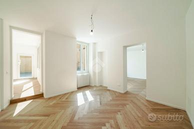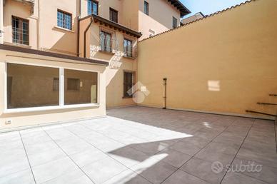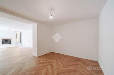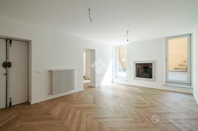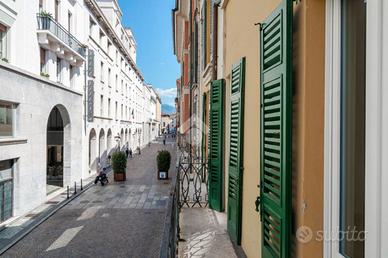 VIA DIECI GIORNATE: siamo nel cuore pulsante della città, tra le stupende Piazza della Loggia, Piazza della Vittoria e Piazza Paolo VI (detta anche Piazza Duomo). La cornice è meravigliosa, sulla bellissima via pedonale di Via X Giornate che ospita da sempre le boutique più prestigiose del centro storico. Al piano primo di un palazzo storico si apre lo splendido quadrilocale completamente ristrutturato di 200 metri quadri, occupandone tutto il piano. L'ingresso si apre nel maestoso soggiorno, doppio; la zona conversazione è arricchita dalla presenza del camino, elemento di grande fascino. Da qui abbiamo uno degli accessi alla terrazza esclusiva di 60 metri quadri, ideale per momenti di relax all'aperto e personalizzabile anche con un gazebo per garantire massima riservatezza. La sala da pranzo separata è perfetta per le cene con gli amici, così come per ospitare una famiglia numerosa nella propria quotidianità. La cucina è stata ricavata nella luminosissima veranda, collegata con la sala da pranzo e col terrazzo. La zona notte ospita tre camere da letto, tutte matrimoniali. Un primo bagno con doccia si trova nel disimpegno, a servizio di due camere. La stanza padronale offre un ampio spazio per ricavare una pratica cabina armadio su misura; da qui l'accesso al bagno en suite, modernissimo e finestrato. Le camere da letto, tutte dotate di balcone esclusivo, godono dell'affascinante vista sulla via pedonale che porta in Piazza Loggia. La casa è dotata di una comoda lavanderia, un pratico ripostiglio-dispensa, e di un accesso privato al cavedio coperto, utilizzabile come stenditoio o ripostiglio extra. La posizione centrale permette di vivere appieno l'atmosfera storica della città, con la comodità di avere tutti i servizi a portata di mano. Un'opportunità unica per chi cerca una residenza signorile in una delle zone più affascinanti di Brescia.