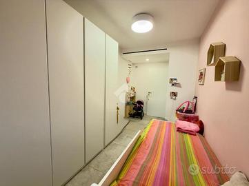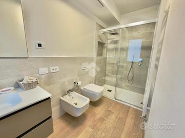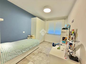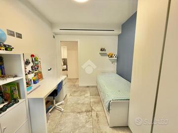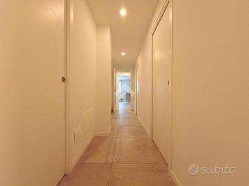 Il corridoio accompagna alla zona notte, curata ed elegante, composta da un pratico ripostiglio, due camerette, un primo bagno dalle generose metrature e la camera matrimoniale, dotata di bagno padronale con moderno box doccia walk-in, pensato per il massimo comfort quotidiano.