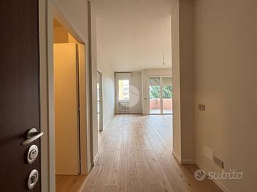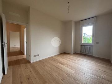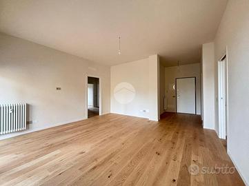 All'interno di un contesto condominiale signorile e ben tenuto degli anni '70, con servizio di portineria e grande parco condominiale, proponiamo appartamento di tipo quadrilocale con cabina armadio e doppi servizi, completamente ristrutturato nel 2026, con tapparelle elettriche in alluminio, infissi in PVC/doppio vetro, pavimentazione in parquet, teleriscaldamento centralizzato con termosifoni e predisposizione per aria condizionata in tutte le stanze. L'appartamento, grazie alla tripla esposizione a nord/est/sud, risulta molto arioso e luminoso. La zona giorno è composta da ingresso direttamente nel soggiorno con balcone, cucina abitabile separata e ripostiglio; un ampio disimpegno ci porta alla zona notte, ovvero due camere matrimoniali dotate di finestra a tutta altezza, una singola con balcone e locale guardaroba. Completano la proprietà i due bagni, entrambi finestrati, con doccia e sanitari sospesi. Uno dei due bagni è provvisto di attacchi per lavatrice ed asciugatrice a colonna. Al piano interrato troviamo la cantina ed il box singolo di proprietà. Possibilità di acquistare un secondo box ad euro 15.000. La zona dove è ubicato l'immobile è comoda alle tangenziali e autostrade, alle fermate del pullman, della stazione e della Metropolitana, e a pochi passi da bar, ristoranti, scuole dell'obbligo, farmacie, parchi pubblici e supermercati.