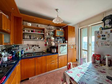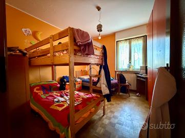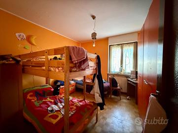 A Bricherasio, in zona comoda al centro e vicina ai campi sportivi, proponiamo in vendita un appartamento situato all'ultimo piano di un condominio senza ascensore, ideale per chi cerca tranquillità e una posizione strategica.L'immobile si presenta accogliente e ben distribuito: l'ingresso si apre su un luminoso soggiorno con camino e una cucina abitabile, entrambi con accesso diretto al primo balcone, che offre una piacevole vista e una buona luminosità.Un corridoio conduce alla zona notte, dove troviamo un pratico sgabuzzino, una lavanderia e una camera matrimoniale spaziosa e luminosa con accesso al secondo balcone, condiviso anche con il bagno, dotato di vasca. La doppia esposizione garantisce un'ottima aerazione e luce naturale durante tutto il giorno.È inoltre presente una seconda camera da letto, perfetta per bambini o ospiti, arredata con un letto a castello e un letto singolo, oltre a diverse soluzioni di arredo funzionale.A completare la soluzione vi sono un box auto di proprietà, un posto auto condominiale numerato e un pezzo di orto condominiale ad uso privato, ideale per chi ama dedicarsi al verde o coltivare un piccolo spazio personale.Un'ottima soluzione per famiglie o coppie che desiderano vivere in un contesto tranquillo ma comodo ai principali servizi del paese.