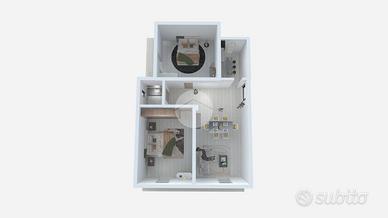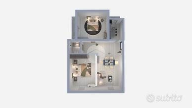 Il disimpegno divide la zona giorno dalla zona notte che si compone di con due camere matrimoniali e servizio dotato di doccia.