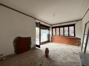 L'ingresso, tramite portoncino blindato, conduce all'ampio e luminoso soggiorno con cucina a vista, caratterizzato da grandi finestre che garantiscono un'ottima illuminazione naturale. Dal soggiorno si accede al giardino privato tramite una comoda scala esterna.