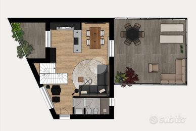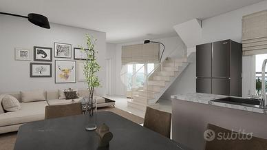 Ultima disponibilità - Attico con terrazzo a Bussero È rimasta un'unica opportunità per vivere in una delle soluzioni più esclusive di Bussero. In una moderna palazzina di sole sette unità, situata in una tranquilla zona residenziale ben servita, ti attende un elegante attico disposto su due livelli abitativi , all'ultimo piano, composto da 3/4 locali. L'ingresso si apre su una spaziosa zona living progettata per offrire ambienti funzionali, accoglienti e ricchi di luce. Il soggiorno, la cucina a vista in stile americano e la sala da pranzo formano un unico grande ambiente, reso particolarmente luminoso grazie a tre ampie vetrate e alla doppia esposizione. Il vero valore aggiunto di questo piano è l'ampio terrazzo di circa 35 mq, un'estensione naturale della zona giorno: perfetto per pranzi all'aperto, momenti di relax o cene in compagnia sotto le stelle. Completano il piano un bagno finestrato e un balcone di servizio. Al livello superiore, collegato da una scala in muratura a vista sul soggiorno, si accede alla zona notte. Qui si trova una camera matrimoniale con accesso a un balcone privato, ideale per godere di uno spazio personale all'aperto in totale tranquillità. Seguono un secondo bagno finestrato e una spaziosa camera doppia, facilmente divisibile a seconda delle esigenze, con un pratico ripostiglio, perfetto anche come cabina armadio. L'ambiente è particolarmente luminoso grazie a due ampie vetrate. Si precisa che vanno aggiunti € 5.000,00 per l'acquisto della cantina e possibilità di poter acquistare un ampio box al costo di €30.000,00. L'edificio è stato progettato con particolare attenzione all'efficienza energetica, assicurando bassi consumi e massimo comfort all'interno di un contesto moderno e sostenibile. In allegato è disponibile una planimetria indicativa con una proposta di suddivisione interna e un'idea d'arredo, entrambe da considerarsi puramente dimostrative. Non perdere l'occasione di trasformare questo attico nella casa dei tuoi sogni