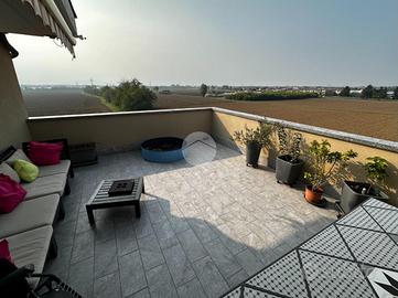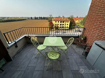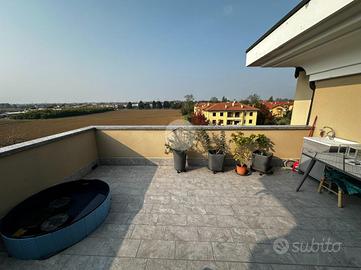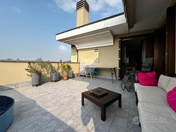 Nel centro del paese, in una via residenziale tranquilla e comoda con tutti i servizi, proponiamo un attico con TERRAZZO davvero unico nel suo genere. L'appartamento si trova al quarto e ultimo piano con ascensore, libero su tre lati e caratterizzato da ambienti luminosi, riservati e da una splendida vista panoramica sul verde.