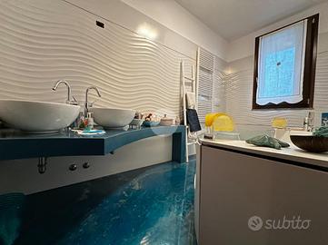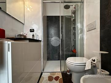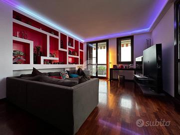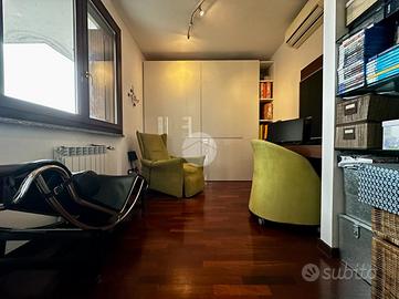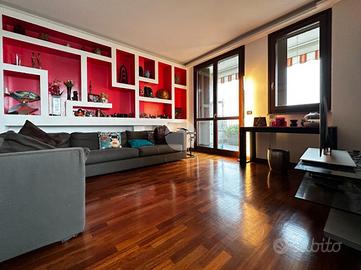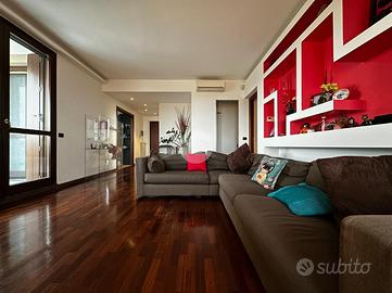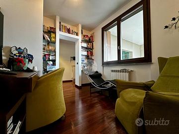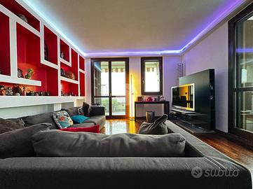 L'appartamento, curato nei dettagli da un architetto, si presenta in condizioni impeccabili, con pavimenti in parquet, controsoffitti con faretti, pareti in cartongesso studiate come librerie e finiture di design che creano un'atmosfera calda e raffinata. È dotato di aria condizionata, tende da sole, zanzariere e impianto d'allarme.