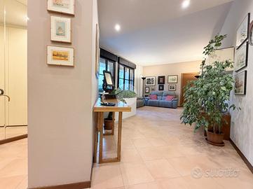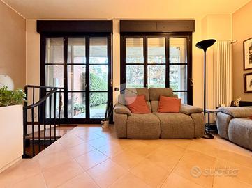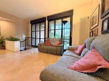 Proponiamo in vendita una soluzione unica nel suo genere, caratterizzata da un'ampia metratura e da uno splendido giardino privato che abbraccia l'abitazione sui tre lati, vero punto di forza della casa. Uno spazio verde di generose dimensioni, in parte piastrellato, perfetto per creare una zona living esterna, organizzare pranzi e cene all'aperto e vivere momenti di relax in totale privacy. L'immobile è ubicato nel centro del paese, comodo con tutti i principali servizi e allo stesso tempo inserito in una via tranquilla e riservata. La palazzina, di soli due piani e rifinita in parte con mattoni faccia a vista, si presenta curata ed elegante. Posto al piano terra, l'appartamento accoglie con un ingresso dove è stata realizzata una funzionale zona ripostiglio/guardaroba con specchi su misura che accompagna verso un ampio e luminoso soggiorno doppio. La cucina è abitabile e ben separata dalla zona living, ideale per la quotidianità familiare. La zona notte ospita tre camere da letto in parquet, tra cui una spaziosa matrimoniale, e doppi servizi entrambi finestrati, uno completo di doccia e l'altro di vasca. Tutti gli ambienti principali, soggiorno, cucina e camere, godono di accesso diretto al giardino, garantendo continuità tra interno ed esterno e una piacevole luminosità grazie alla tripla esposizione. Dal soggiorno, tramite una comoda scala in legno, si accede al piano sottostante dove troviamo un ampio locale oltre ad ulteriori due cantine e un secondo ingresso che rende particolarmente funzionale l'organizzazione degli spazi. Il box doppio in lunghezza di circa 31 mq completa la proprietà. La soluzione si presenta in ottime condizioni grazie all'attenta cura dei proprietari, con le porte extra capitolato e gli abbassamenti con faretti che valorizzano gli ambienti. L'immobile è dotato di inferriate, zanzariere, impianto di irrigazione per il giardino, tendone da sole, predisposizione per antifurto e aria condizionata, oltre a caldaia a condensazione con due t...
