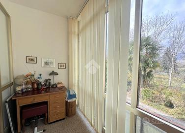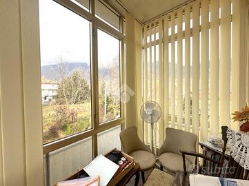 Bussoleno : Appartamento situato in zona residenziale e riservata, in piccolo contesto condominiale, posto al secondo piano. L'Ingresso si apre su un ampio disimpegno che separa la zona giorno luminosa, composta da soggiorno e cucina con accesso a un ampio terrazzo dalla zona notte con due camere da letto, di cui una dotata di veranda, oltre a un ampio ripostiglio che offre ulteriore spazio. Il bagno ristrutturato, completo di doccia, attacchi per lavatrice e finestra. Completa la proprietà un ampio box auto, una cantina e giardino privato. L'impianto di riscaldamento è autonomo gestito da una caldaia a metano. Le spese condominiali sono contenute.