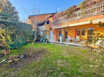 L'abitazione è composta da ingresso su disimpegno, cucina abitabile e soggiorno in ambiente luminoso con accesso diretto al giardino, perfetto per momenti di relax all'aperto. La zona notte comprende due camere da letto e due bagni finestrati, ben distribuiti e funzionali.