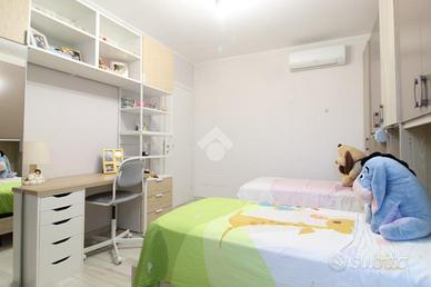 La zona notte è composta da disimpegno, due camere matrimoniali (di cui una con balcone), una camera singola anch'essa con balcone, un comodo ripostiglio e doppi servizi, uno con doccia e uno con vasca, perfetti per le esigenze di tutta la famiglia.