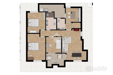 Attraverso il corridoio si accede alla zona notte, composta da tre camere da letto di generose dimensioni, tutte ben illuminate e facilmente arredabili, e da un bagno padronale finestrato. Gli ambienti risultano confortevoli e ben proporzionati, ideali per una famiglia o per chi desidera spazi ampi e funzionali.