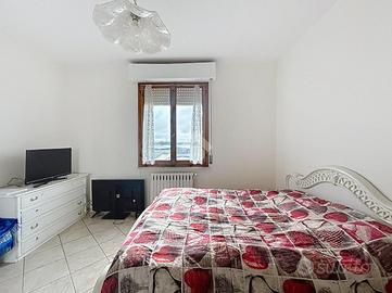 La zona notte, ben separata, ospita due camere da letto, di cui una matrimoniale dalle generose dimensioni, ideali sia per una giovane coppia sia per una famiglia. Il bagno, finestrato e dotato di doccia, garantisce praticità e funzionalità.