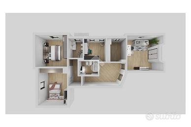 La zona notte comprende una cameretta, due camere matrimoniali, un bagno finestrato con doccia e balconcino, e un secondo bagno con vasca.