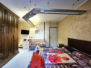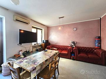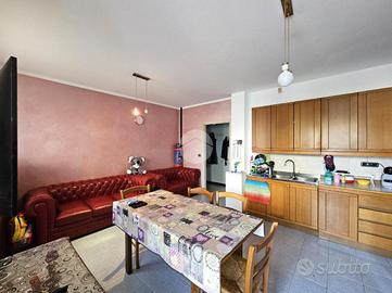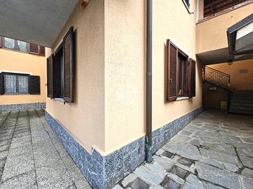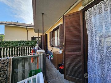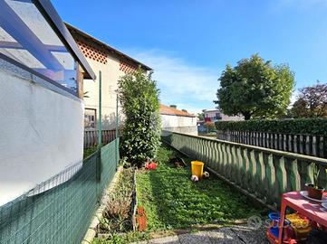 CALUSO: Nei pressi della Coop e vicino alla piazza del mercato; In piccolo complesso costruito negli anni 90'; alloggio al piano terra con giardino privato. L'appartamento è composto da soggiorno, cucina abitabile, due camere, bagno e un comodo ripostiglio. Tutti gli infissi sono in legno con doppi vetri e persiane. Il riscaldamento è autonomo con basse spese di gestione. Completano l'unità immobiliare una cantina e un box auto di 23 mq.