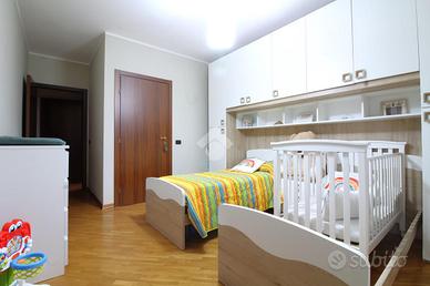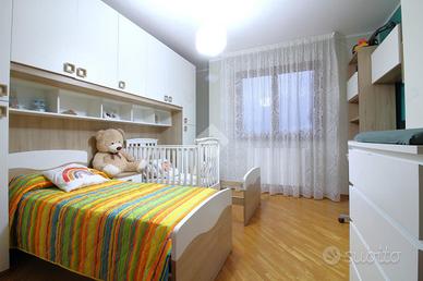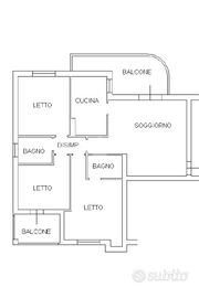 L'appartamento vanta di una superficie di 120 mq ed è composto da ingresso su soggiorno con accesso al balcone, cucina abitabile, disimpegno notte, bagno, camera singola con balcone e 2 camere matrimoniali di cui una con bagno privato.