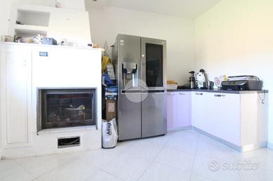 La soluzione dispone di riscaldamento autonomo con tre diverse modalità, dalla classica caldaia, al termocamino e la stufa a pellet presente nel soggiorno anch'essa collegata all'impianto di riscaldamento.