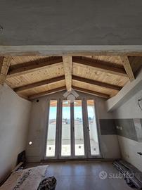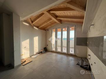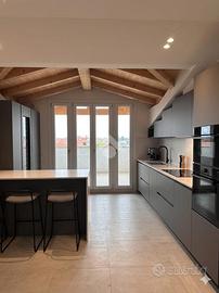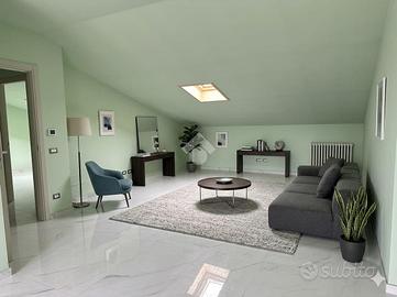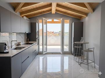 L'appartamento è situato in un contesto di soli 4 appartamenti senza spese condominiali, si trova al secondo e ultimo piano. La porta di ingresso è blindata e affaccia sul disimpegno, la zona giorno è living e luminosa grazie alla porta finestra che affaccia direttamente sul terrazzo porticato. Le camere da letto sono tre, due hanno l'accesso al balconcino, mentre una è illuminata dal velux. I bagni sono due, uno con la doccia e uno con la vasca, entrambi finestrati tramite velux. L'appartamento è stato interamente ristrutturato con materiali moderni. Il riscaldamento è autonomo e la caldaia è a condensazione.