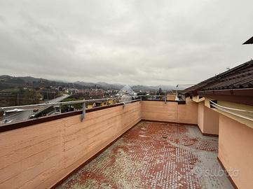 Viale Italia, nel centro di Canelli, appartamento con mansarda che unisce comfort e funzionalità. Situato al terzo piano, servito da ascensore, l'appartamento si apre su un ampio soggiorno, ideale per momenti di relax e convivialità. La cucina abitabile offre uno spazio perfetto per chi ama cucinare. Il piano include anche un bagno finestrato con vasca e due balconi spaziosi. Una scala interna conduce alla mansarda, dove si trovano due camere da letto, un secondo bagno con doccia e due ampi terrazzi che regalano una vista panoramica di Canelli e delle sue colline, compreso il Castello. L'appartamento gode di aria condizionata per un maggiore comfort. Completano la proprietà un box singolo, un posto auto e una cantina. La soluzione è ideale per chi cerca un ambiente accogliente e ben organizzato a pochi passi dal centro cittadino.