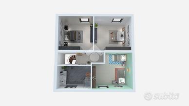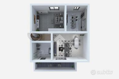 L'appartamento, situato al piano secondo ed ultimo, è disposto su due livelli. Dispone, al piano secondo, di una zona giorno composta da soggiorno e cucina abitabile, una camera da letto ed un servizio finestrato. Un terrazzino privato offre uno spazio esterno esclusivo, perfetto per momenti di relax. Il piano superiore ospita 3 locali hobby utilizzabili come camere da letto o locali studio/guardaroba, oltre ad un secondo servizio finestrato.