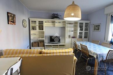 Località Caorle, nella zona di Ponente appartamento in vendita situato al secondo piano a soli 300 metri dal mare. Si accede dall'entrata principale dell'edificio e si prosegue tramite le scale interne. Alla destra dell'entrata troviamo uno spazio utile per inserire vari effetti personali adiacente c'è la cucina abitabile e il soggiorno con la sala da pranzo entrambi luminosi e spaziosi da essi si esce nel balcone, perfetto per passare dei momenti di relax. Un corridoio ampio ci porta nella zona notte composta da due camere matrimoniali di cui una con letto a castello, un bagno finestrato con doccia e di un altro comodo bagno utile per gli ospiti. L'appartamento gode di impianto elettrico nuovo e di quattro split con pompa di calore che garantiscono comfort per tutte le stagioni. Tramite le stesse scale interne possiamo raggiungere l'ultimo piano, qua si trovano un piccolo disimpegno e un terrazzo condominiale ampio abitabile dove c'è la possibilità di rilassarsi o di utilizzarlo per le proprie attività quotidiane. La proprietà si trova in una posizione strategica data dalla vicinanza dei servizi principali e dal centro storico, gli da un ulteriore valore la vicinanza della spiaggia a soli 300 metri. Opportunità interessante sia come soluzione abitativa residenziale che come casa vacanze.