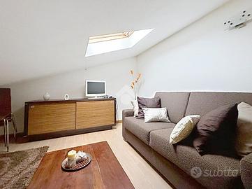 Salendo una graziosa scala in legno si accede ad un'altra stanza adibita a secondo sioggiorno fruibile come studio o altra camera da letto.