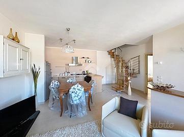 Salendo le scale percorrendo il resede ci troviamo di fronte all'ingresso che si apre su un luminoso soggiorno open space con angolo cottura in stile moderno con finiture di pregio.