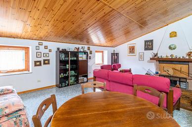 Il piano superiore ospita invece la camera matrimoniale principale, servita da un piccolo ripostiglio. A completare la proprietà vi è una cantina di pertinenza.
