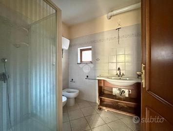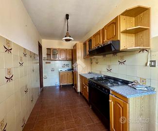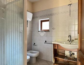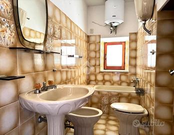 Internamente l'abitazione si compone di: salone, cucinotto affiancato da bagno con vasca, camera matrimoniale ed ampio disimpegno che conduce verso un altro spazioso salone con camino, ripostiglio e bagno con doccia.