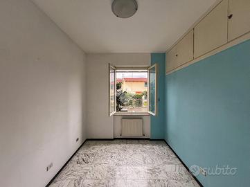 Carasco - Centro - Appartamento in bifamiliare, sito in un tranquillo contesto residenziale. L'immobile si sviluppa su un unico piano rialzato, ed è composto da: soggiorno con angolo cottura, due camere da letto, balcone vivibile che affaccia sul giardino privato, e a cui si accede tramite una breve scalinata. Completano la proprietà un ampio magazzino carrabile al di sotto dell'appartamento ed una cantina.