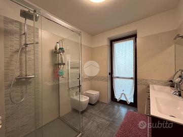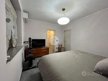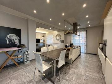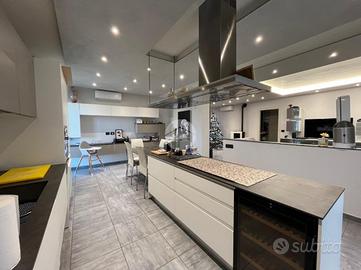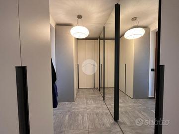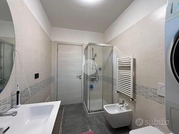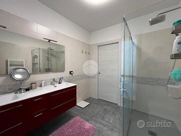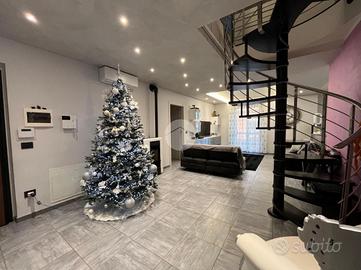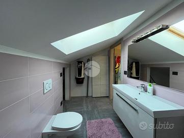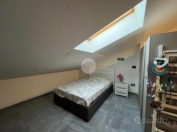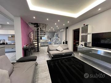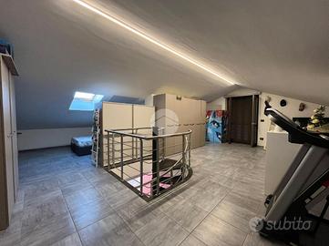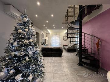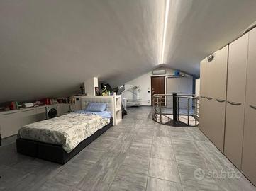 La palazzina, di poche unità abitative, è stato edificato nel 2015 circa. Priva di barriere architettoniche e ben tenuta nelle parti comuni. La zona risulta essere comoda alla stazione ferroviaria a pochi minuti di auto e anche al raggiungimento dei principali servizi a piedi. Le ampie metrature interne si estendono su due livelli. L'ingresso, tramite portoncino blindato, è sul soggiorno separato dalla cucina abitabile. Il piano è servito da due servizi, entrambi con doccia e uno finestrato e l'altro con balcone. E' presente una prima camera da letto matrimoniale con una cabina armadio adiacente. La scala a chiocciola accompagna alla mansarda finita, dove è possibile ricavare altre due camere secondo le esigenze. Il piano mansardato è servito da un terzo bagno con doccia e velux ed ha la possibilità di un secondo ingresso indipendente. Gli infissi sono in pvc con i doppi vetri e sono state installate le zanzariere. E' stato installato l'impianto di condizionamento inverter in ogni piano. Ogni locale ha sfogo esterno su un balcone privato. Il riscaldamento è semi - autonomo a pavimento. Al piano interrato, incluso nel prezzo, sono presenti due cantine ed un box auto di 56 mq.