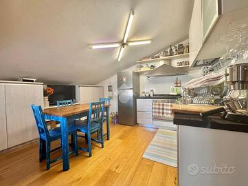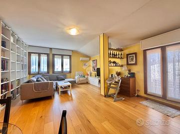 L'abitazione si distingue per la sua ampiezza e luminosità. La zona giorno accoglie una cucina abitabile e un soggiorno spazioso e particolarmente luminoso, grazie a due ampie finestre e a una porta finestra che si apre su una splendida terrazza abitabile di circa 20 mq, perfetta per cene all'aperto, momenti di relax o per chi ama godersi uno spazio esterno vivibile durante tutto l'anno.