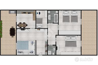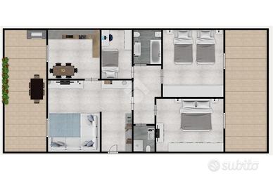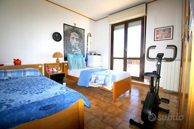 La zona notte è ben separata e composta da tre camere da letto, di cui due con accesso al secondo terrazzo, offrendo così spazi luminosi e arieggiati. Completano la zona notte due bagni, uno con piatto doccia e l'altro con vasca, ideali per soddisfare le diverse esigenze familiari
