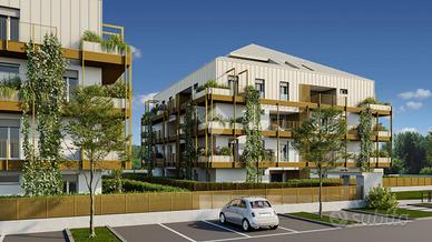 Gli appartamenti, tutti di nuova costruzione, si distinguono per ambienti luminosi, finiture di pregio e soluzioni abitative versatili: dagli attici panoramici con ampi terrazzi alle unità con giardini privati, progettate per rispondere a diverse esigenze abitative.Dal punto di vista architettonico, l'intervento si caratterizza per linee semplici e funzionali. Fasce marcapiano, presenti lungo tutto il perimetro degli edifici, fungono da frangisole, contribuendo a proteggere le facciate e gli interni dall'irraggiamento solare, con benefici concreti nella riduzione del surriscaldamento estivo.