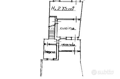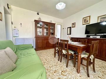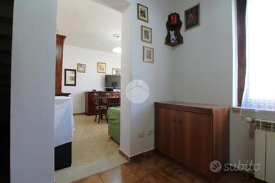 Trilocale: l'immobile si compone al piano terra con soggiorno con cucina separata abitabile, veranda ed una bagno finestrato con sanitari e vasca. Tramite scala interna si accede al piano primo dove troviamo sviluppata la zona notte caratterizzata da due camere matrimoniali, di cui una con accesso al terrazzo tramite porta finestra. Al di sopra dell'appartamento si trova un sottotetto non abitabile. L'immobile necessita di ristrutturazione.